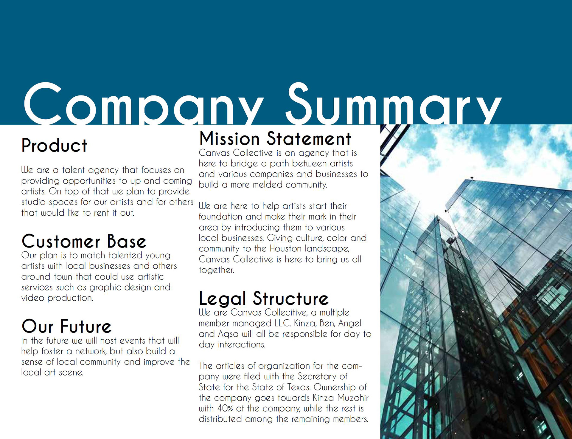 Canvas Collective is a concept for a start-up agency which rents out studio space and equipment to digital media artists, entrepreneurs and students in Houston and pairs them to small businesses for work opportunities. My team came up with this plan and it consisted of myself (who served as the President of the company), Angel Melendez, Aqsa Munir and Benjamin Alvarez. We sought to make a video to pitch this idea to investors and draft a complete business proposal. It includes market research, budgeted hourly rates and estimating costs based on equipment, personnel and floor-plans drafted on a real warehouse location in Houston to conceptualize this start-up.