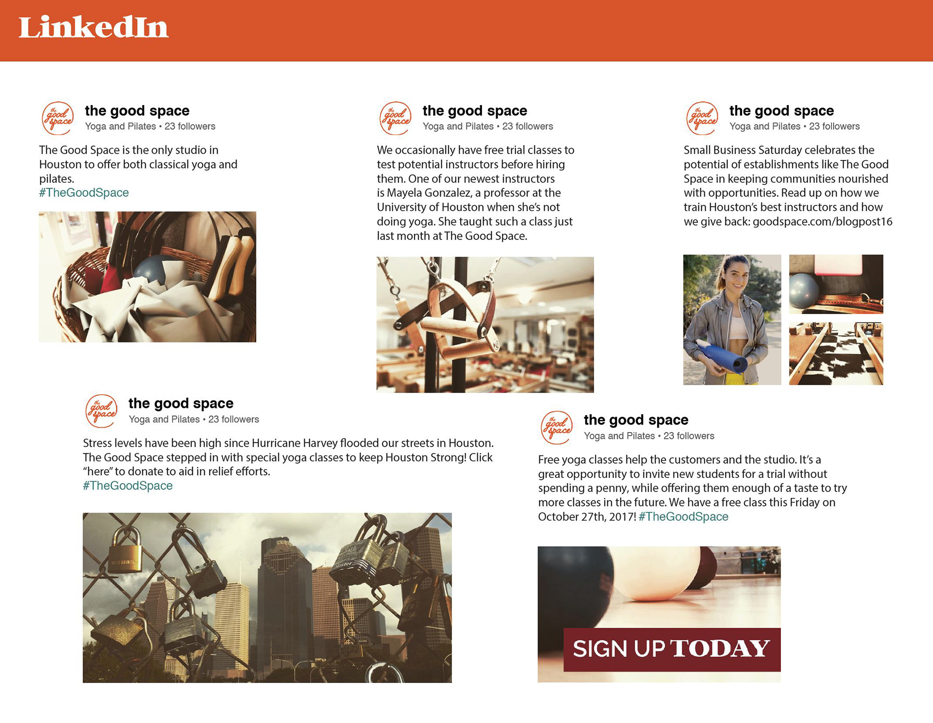 This project was a combined effort between myself and my partner, Londin Mair. The Content Strategy course during Fall 2017 allowed us to help rebrand a local Yoga Studio, The Good Space, and establish a research-based social media strategy using personas. We redesigned their brand, prepared the various media plugged on to their website and social media posts. It was designed using Adobe Illustrator and Photoshop, and the layout was finalized in Adobe InDesign. It was printed on a Konica Minolta Digital Press, cut on a Titan paper cutter, and ultimately bound with a resin-based metal back using a thermal binding machine.