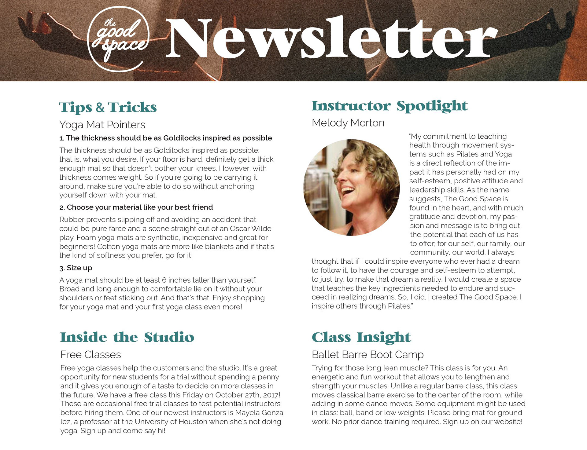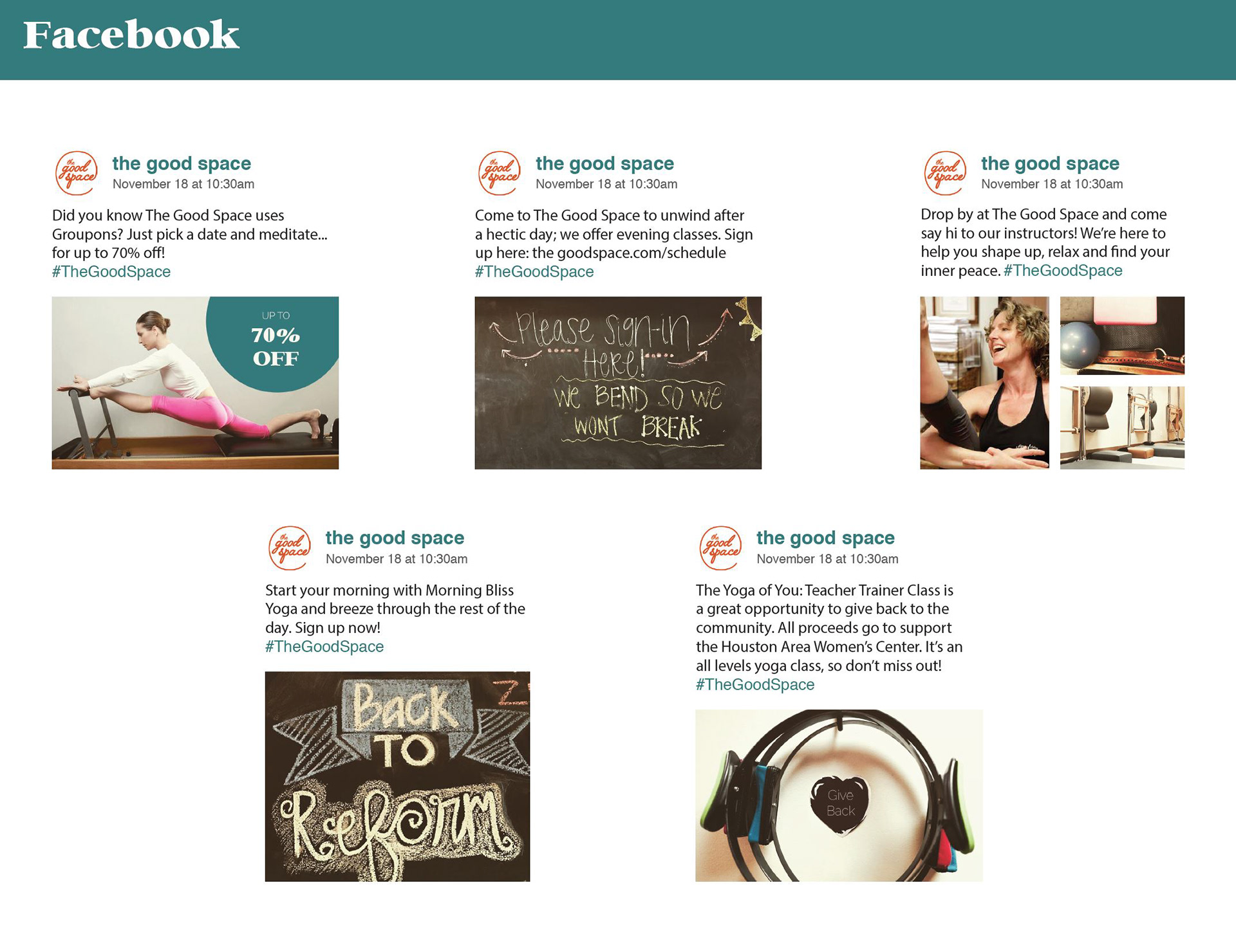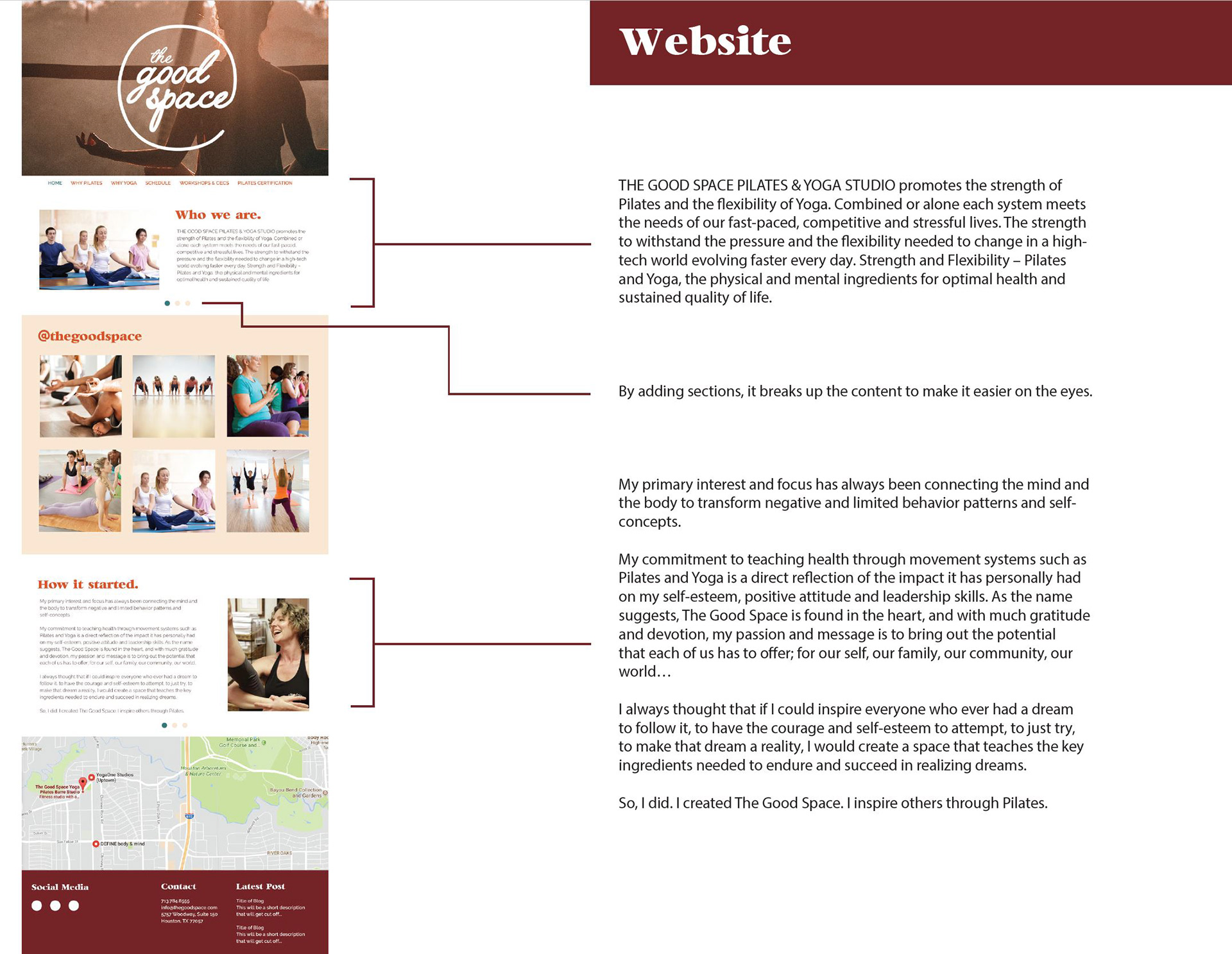 This project was a combined effort between myself and my partner, Londin Mair. The Content Strategy course during Fall 2017 allowed us to help rebrand a local Yoga Studio, The Good Space, and establish a research-based social media strategy using personas. We redesigned their brand, prepared the various media plugged on to their website and social media posts. It was designed using Adobe Illustrator and Photoshop, and the layout was finalized in Adobe InDesign. It was printed on a Konica Minolta Digital Press, cut on a Titan paper cutter, and ultimately bound with a resin-based metal back using a thermal binding machine.