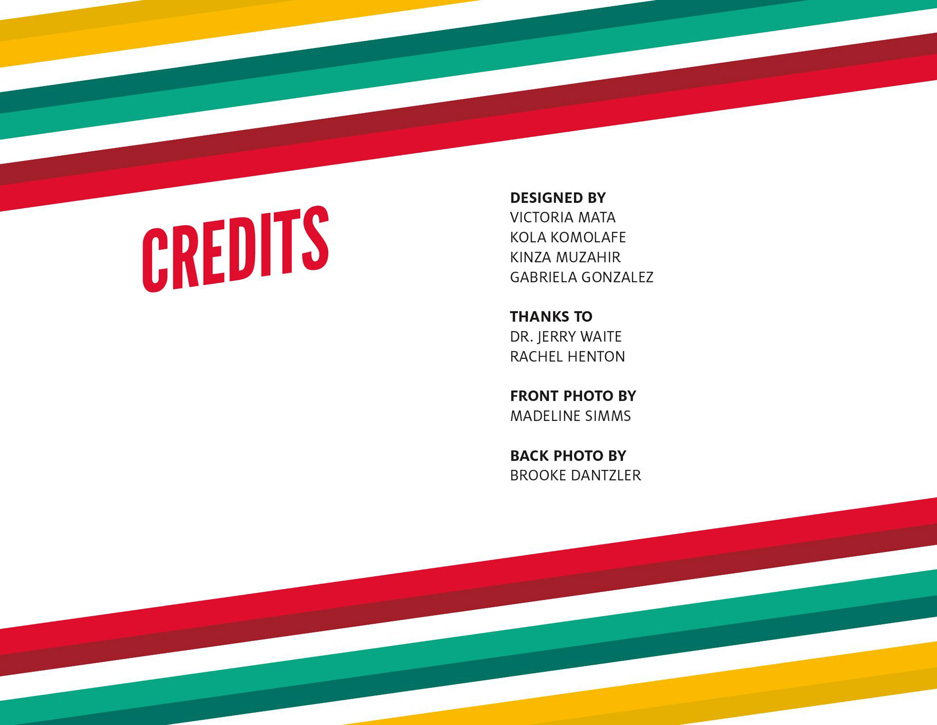 Our team, Gabriela Gonzalez, Victoria Mata, Kola Komolafe and I, designed the booklet in Adobe InDesign and imported the photos and metadata through XMPie while utilizing variable data printing concepts merged with MS-Excel.